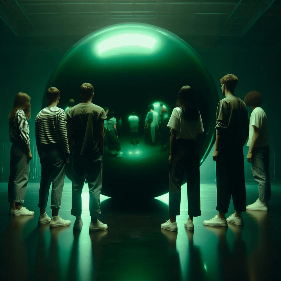 És el verd només una ombra del groc? Sota aquesta singular hipòtesi, l’obra proposa desposseir el verd dels seus atributs habituals (com la frondositat i l’exuberància vegetal) per abraçar els conceptes associats als paisatges dominats pel groc, com les esplanades desèrtiques o la figura del sol. Així, la instal·lació proposa un espai inundat per la llum verda, en què unes extenses línies làser projecten un terreny deshabitat, presidit per una gran esfera com l’astre rei.