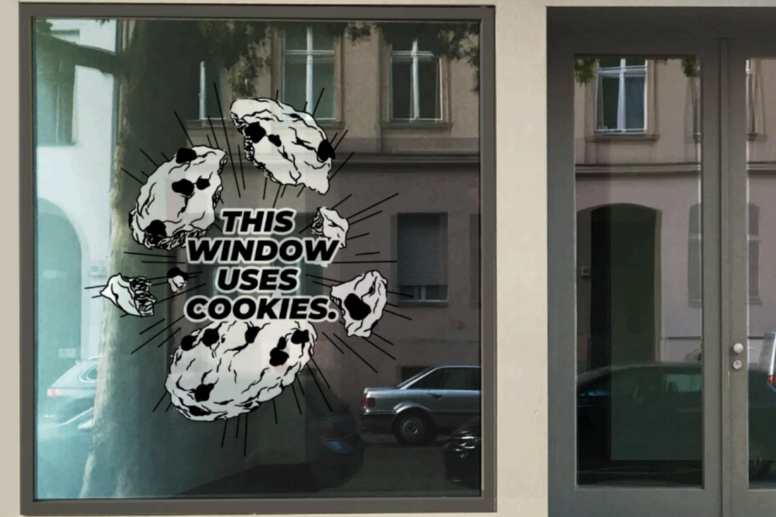 “This window uses cookies”, es tracta d’una finestra il·lustrada de Evamik. Inspirada pels molestos pop-ups que inunden la nostra experiència en línia, l’artista satiritza sobre la relació amb els continguts digitals. L’obra convida a reflexionar com interactuem amb la tecnologia i com les nostres accions en línia poden tenir conseqüències significatives en la nostra privacitat i autonomia.
