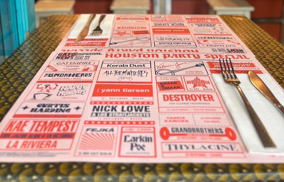 Gato News was born seven years ago within El Gato Producciones, an agency that has always been closely connected to the street. We started flyposting in Barcelona over twenty years ago, learning from the pavement how the city, its music, its bars and its people moved. Over time, we saw that print was fading: flyers made less sense, formats were changing, but the need for local communication remained. That’s how the idea arose to create a format that wouldn’t become just another piece of waste, but something useful, visible and meaningful. A cultural placemat-agenda printed on recycled paper and distributed in restaurants across the city.